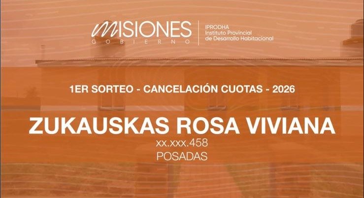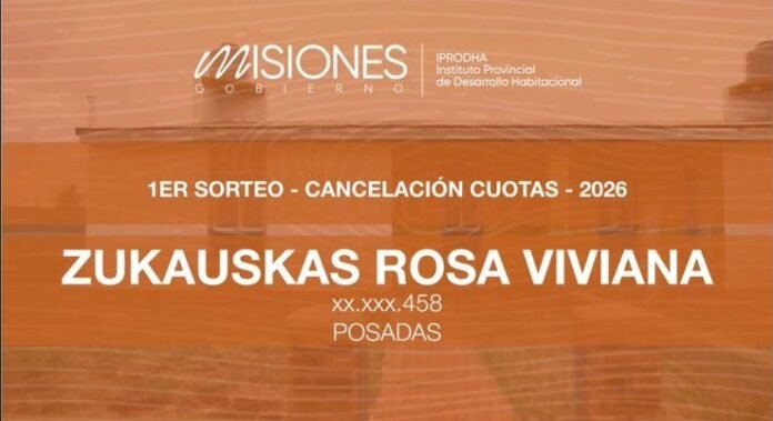 El Instituto Provincial de Desarrollo Habitacional (IPRODHA) realizó esta mañana el primero de sus tres sorteos estímulo del año, destinado a premiar a los beneficiarios que mantienen sus pagos al día. En esta oportunidad, la ganadora fue Rosa Viviana Zukauskas, residente en la urbanización de Itaembé Guazú de la ciudad de Posadas, quien accedió a la bonificación de dos años en su plan de amortización.