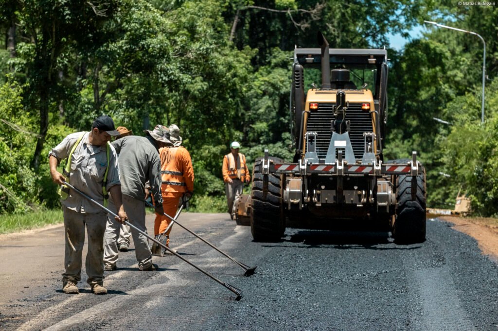 Junto con la Municipalidad Local, que aporta a la tarea, se está llevando adelante la reconstrucción de los sectores más dañados y reponiendo la capa asfáltica en gran parte de los poco más de 2.000 metros del camino de acceso hasta el portal de ingreso a uno de los atractivos turísticos naturales de mayor convocatoria en ese sector de Misiones.